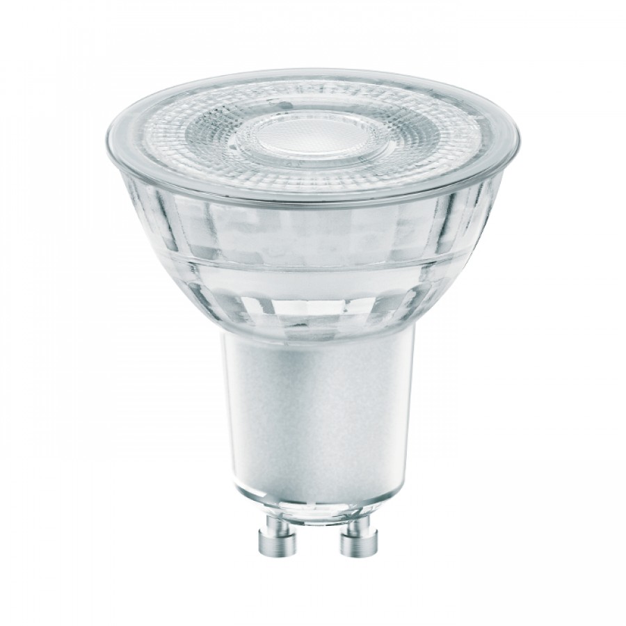 Lâmpada LED EGU10 com faixa de temperatura de 2700 a 2200 K.